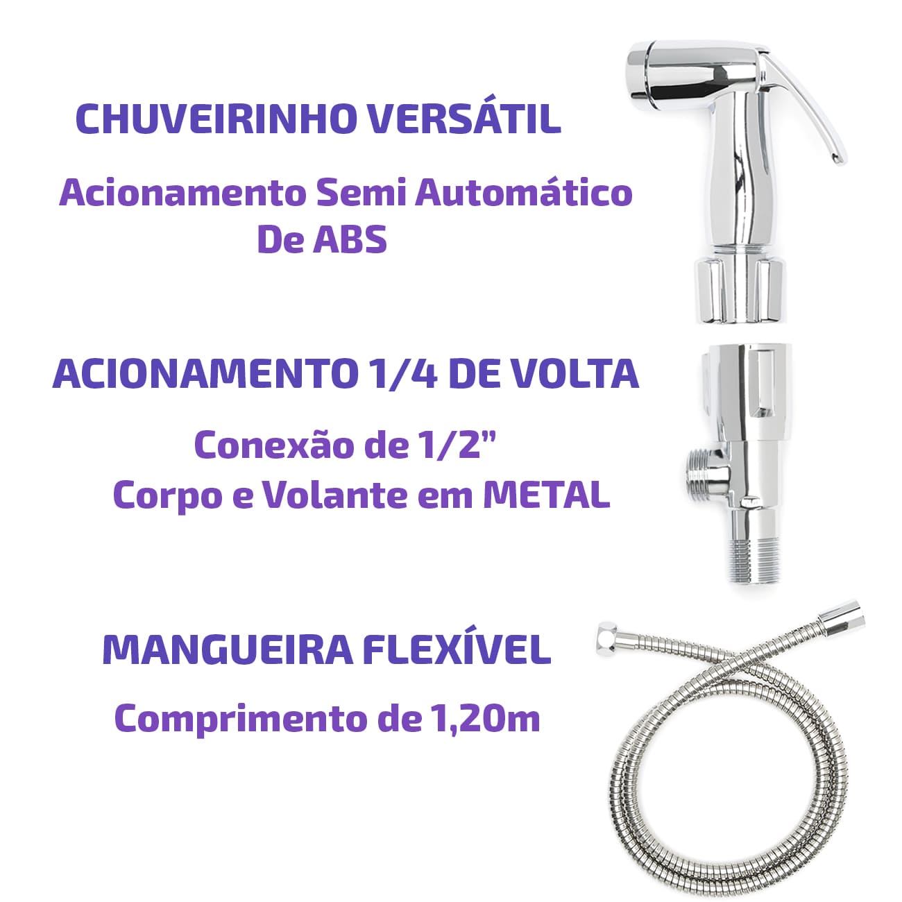 Produto: Ducha Higiênica Cromada DZNEW Acionamento Com 1/4 de Volta;